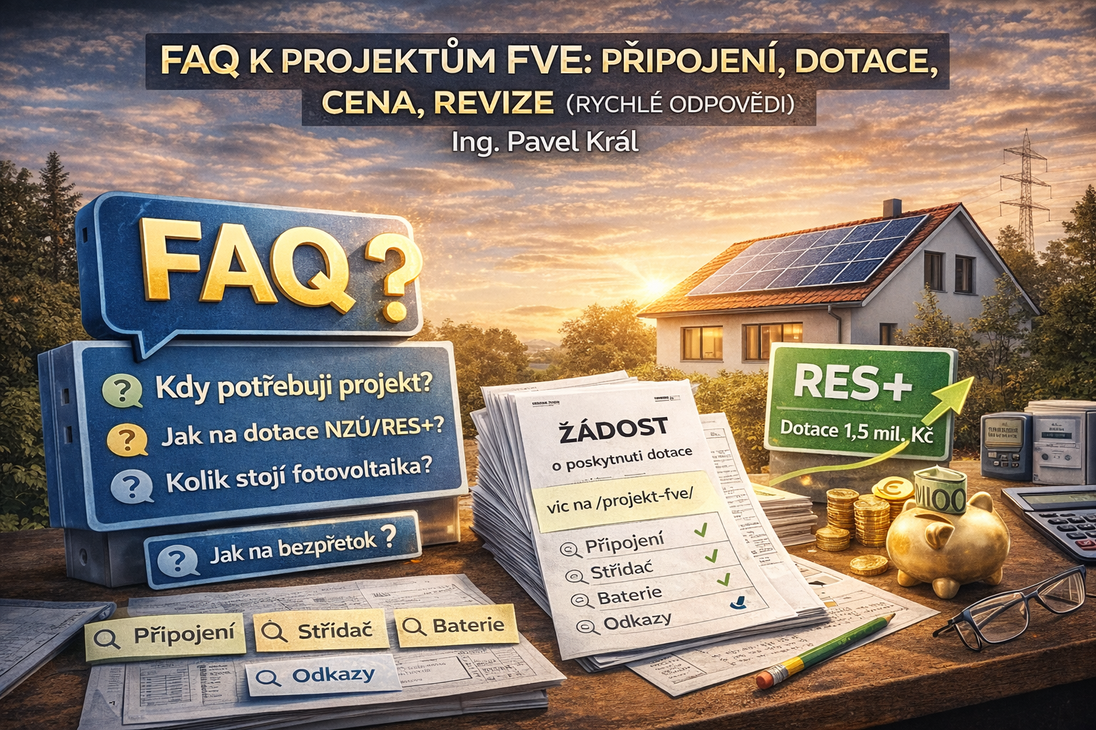 Tahle stránka je FAQ – rychlé odpovědi na nejčastější dotazy k projektům FVE a odkazy na detailní články. Pokud chcete souhrn "co projekt FVE obsahuje a kdy je potřeba", začněte zde: Projekt FVE – co obsahuje a kdy je potřeba.